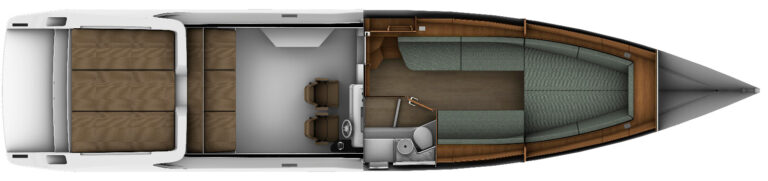 Sim, é possível ter um barco de corrida com conforto. Feita para pessoas que não desejam ter limites para suas emoções, a 48 Offshore não navega, ela voa. Possui o acabamento primoroso de um barco cabinado, cozinha de apoio e sofisticação não encontrada em barcos esportivos. O incrível desenho do seu casco feito por infusão e com V profundo corta as ondas como uma navalha e assegura excelente navegabilidade, desempenho e autonomia. Experimente a liberdade sem limites.