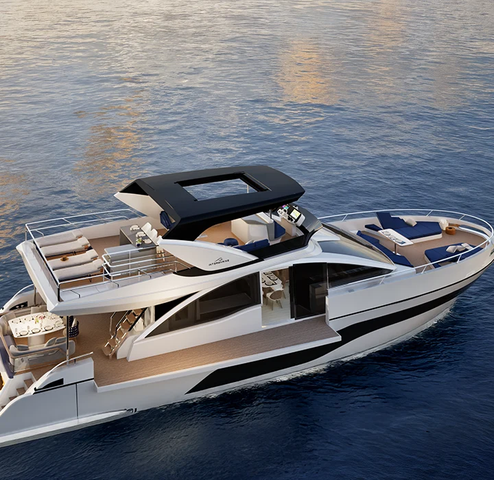 A proa, inspirada em mega yachts, o flybridge de 50 m² com jacuzzi e bar panorâmico, e a tradicional Daybed Intermarine traduzem o equilíbrio entre conforto e grandiosidade. Mas é na personalização ilimitada que a 25M revela sua verdadeira essência — cada unidade é uma obra exclusiva, feita sob medida para refletir o estilo de vida e os desejos de seu proprietário. A 25M é mais do que uma nova embarcação. É um novo marco na arte de viver o mar.