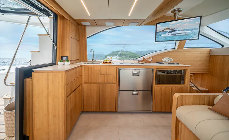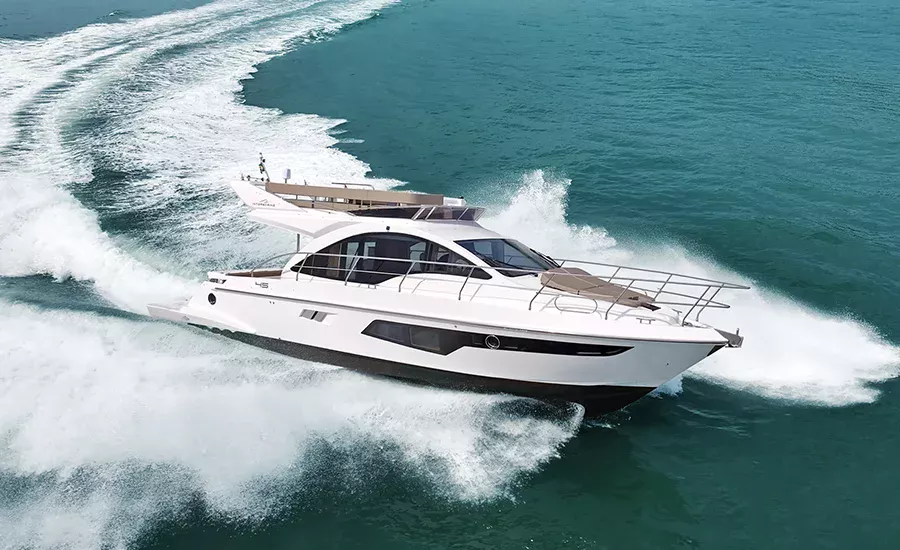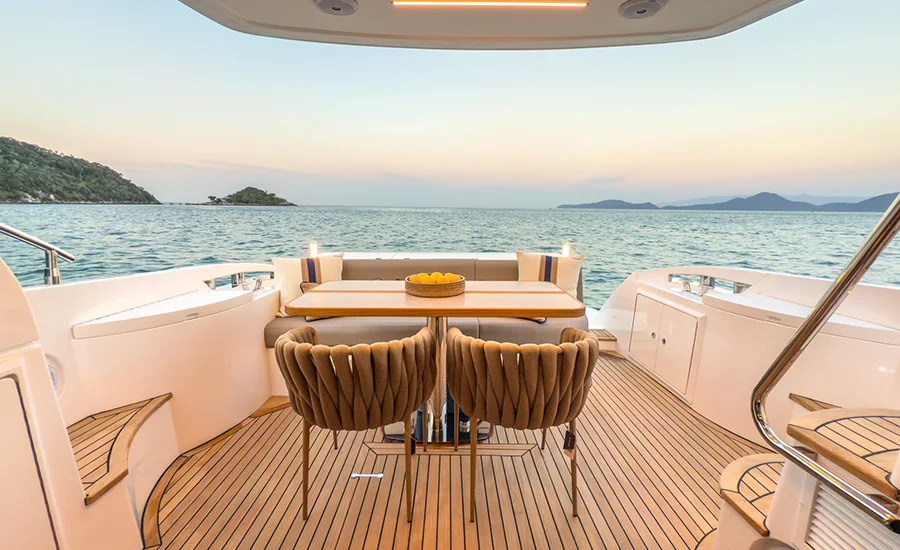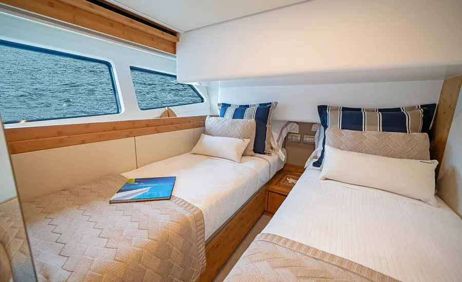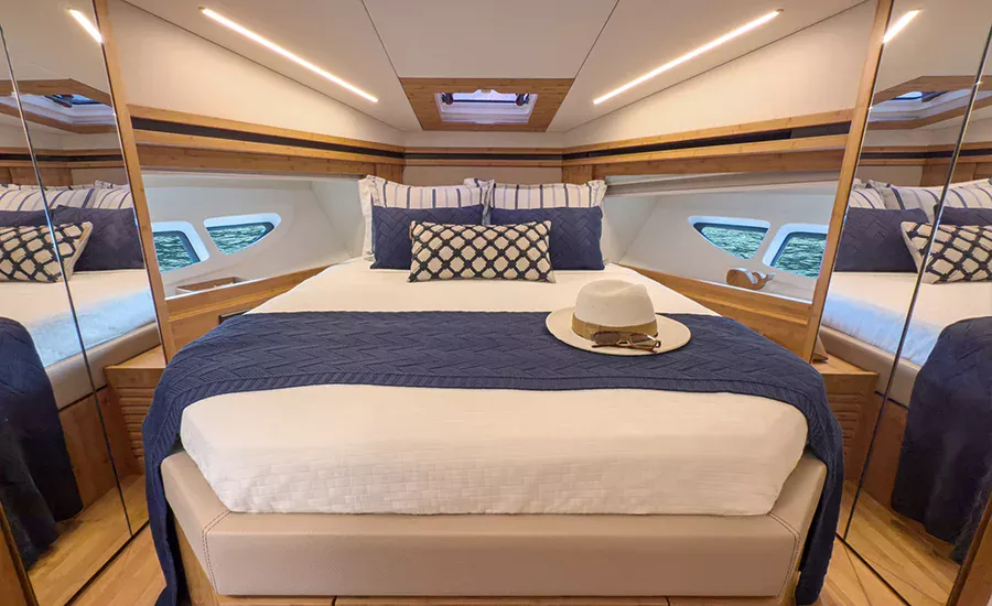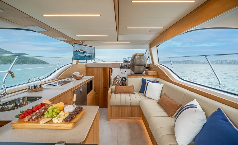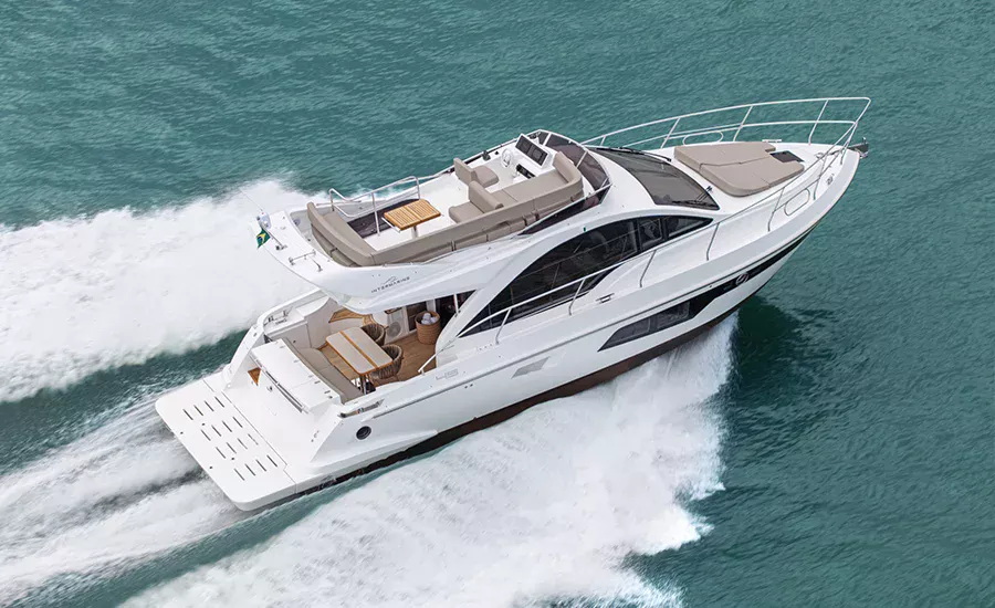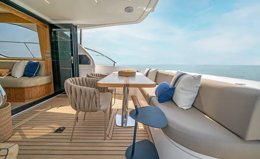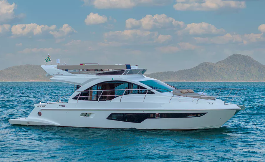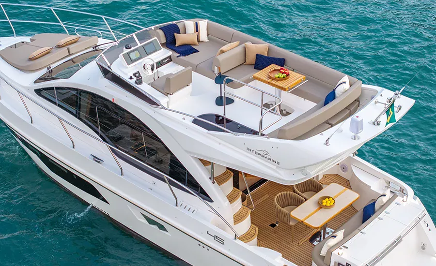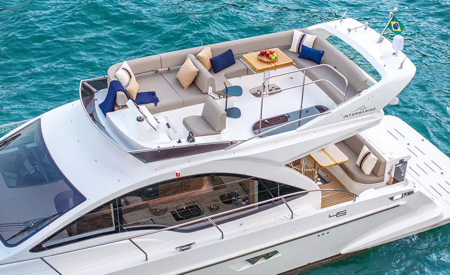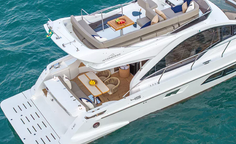 A IM 45 não é um barco de 45 pés, é uma Intermarine. Por isso, herda itens de embarcações maiores do estaleiro, como os acabamentos primorosos, revestimentos excepcionais e um acervo de tecnologias não comuns. Possui o maior Fly e pé direito da categoria, para-brisa inteiriço, que proporciona visão estonteante, banheiros e camarotes típicos de embarcações maiores. Suas imensas áreas envidraçadas aumentam o contato com a natureza e ampliam a claridade, deixando os ambientes mais agradáveis e parecendo ainda mais amplos.