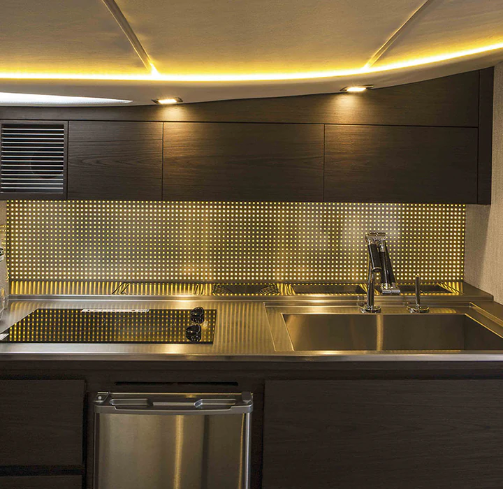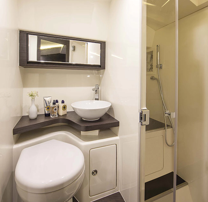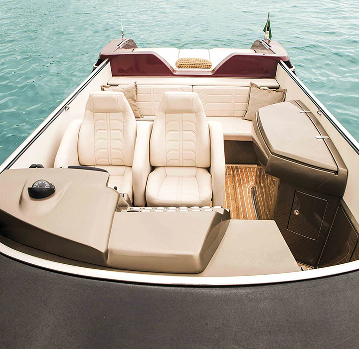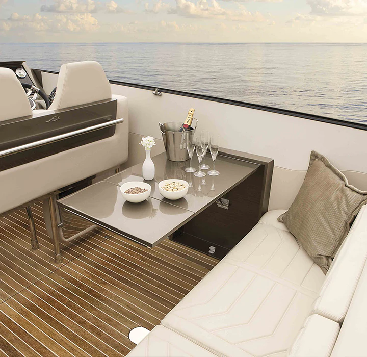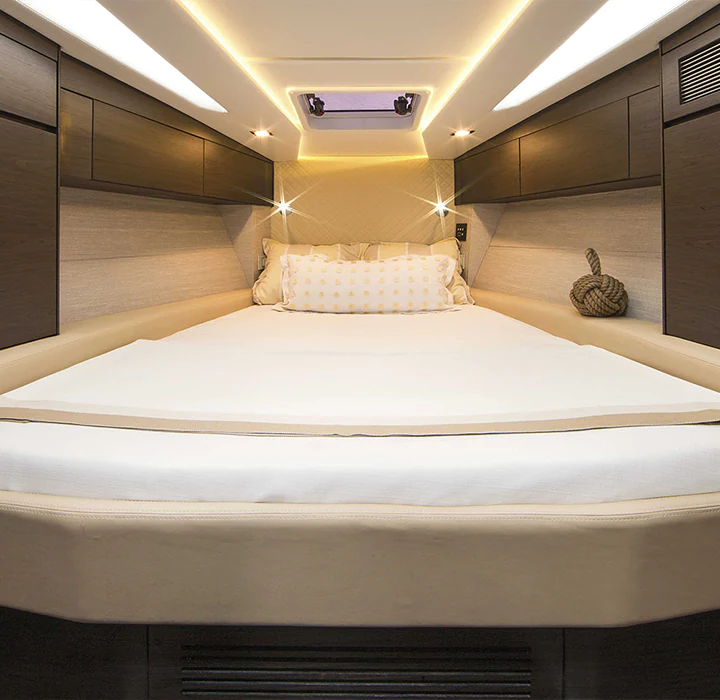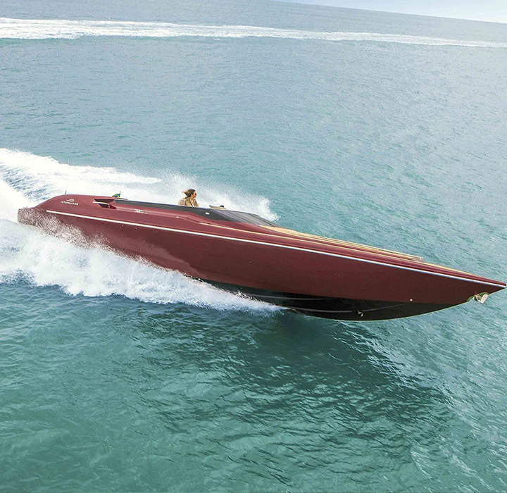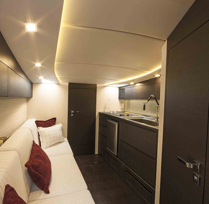 Sim, é possível ter um barco de corrida com conforto. Feita para pessoas que não desejam ter limites para suas emoções, a 48 Offshore não navega, ela voa. Possui o acabamento primoroso de um barco cabinado, cozinha de apoio e sofisticação não encontrada em barcos esportivos. O incrível desenho do seu casco feito por infusão e com V profundo corta as ondas como uma navalha e assegura excelente navegabilidade, desempenho e autonomia. Experimente a liberdade sem limites.