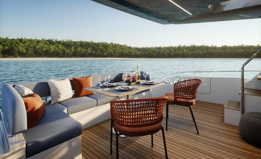 Comprimento do casco com plataforma de popa: 17.70 m (57.80′)