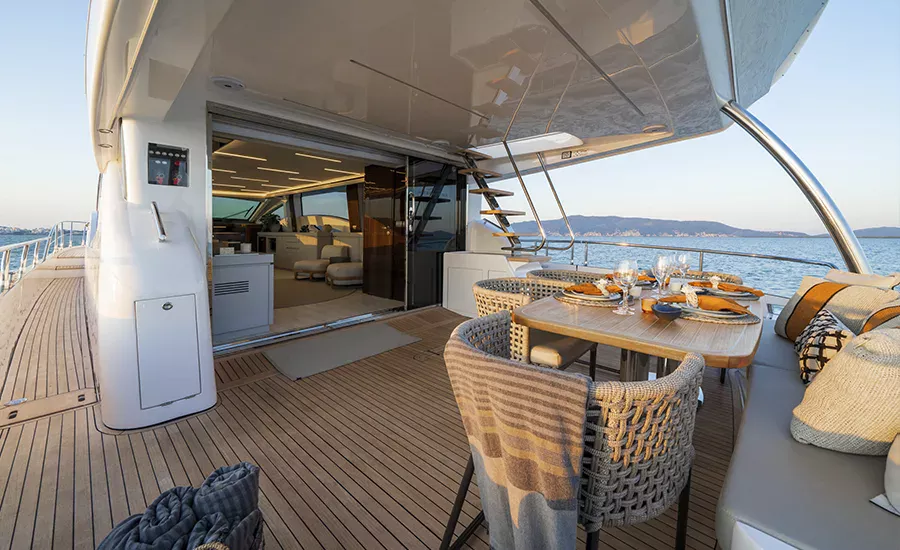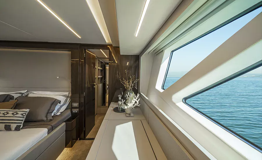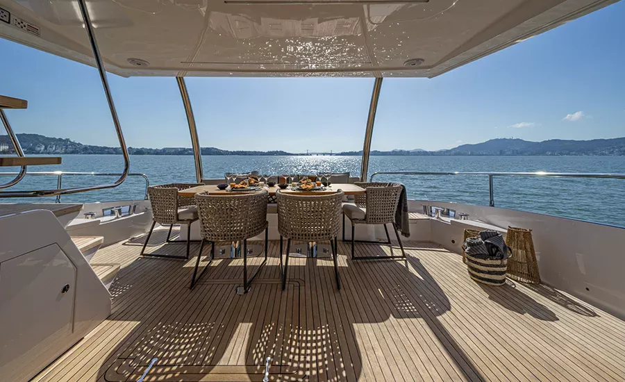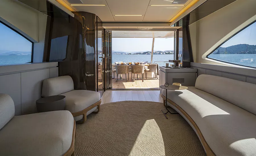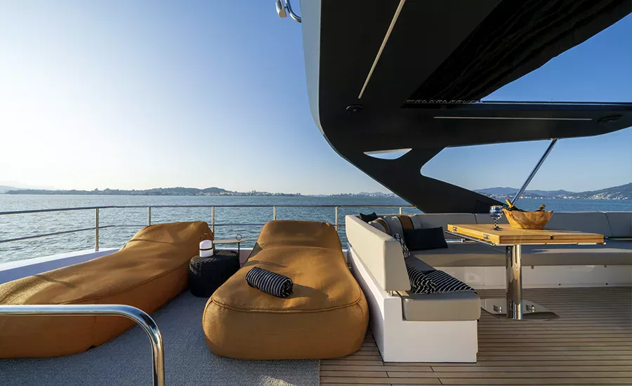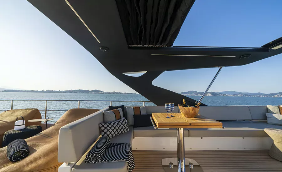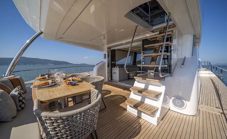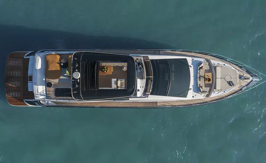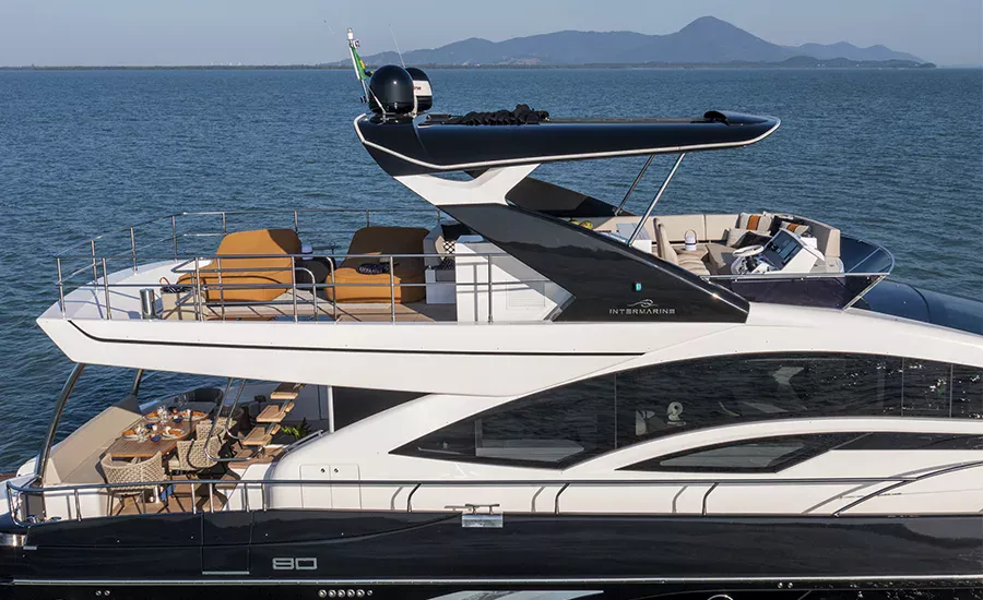Ter um Yatch esculpido para refletir a sua personalidade é algo extraordinário. A IM 80 proporciona o máximo da personalização e irá atender você em tudo. Com design esportivo e porte exuberante, a IM 80 oferece diversas opções de plantas para o upper deck e salão, além de lavabo e porta lateral de acesso ao passadiço. O salão, todo envidraçado e com piso único, se integra totalmente com a praça de popa, aumentando a percepção de grandeza. Imensa plataforma de popa com área gourmet e lounge na proa com sofá frente à frente, compõem suas generosas áreas externas. É um Yatch que excede o perfeccionismo.