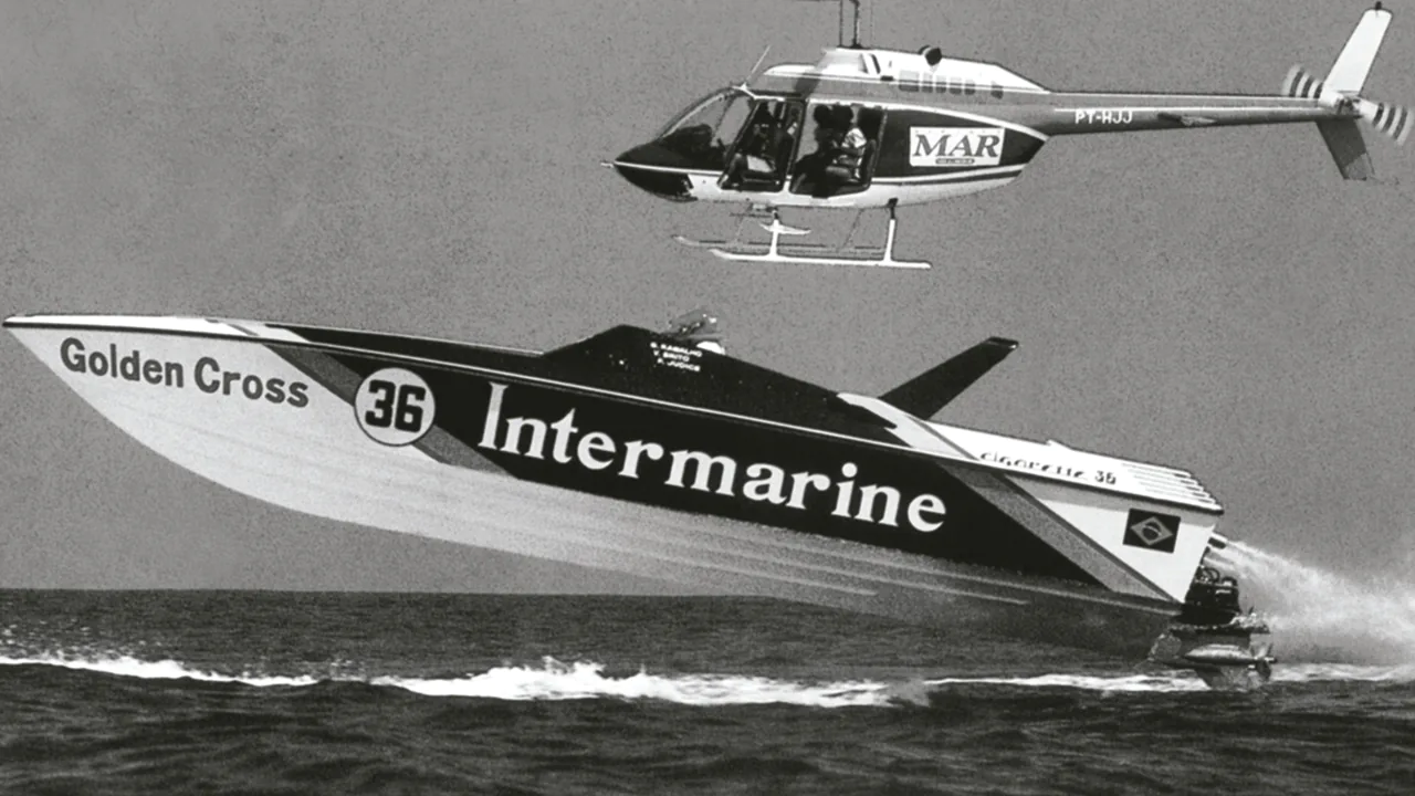 A icônica foto da Intermarine, que rodou o mundo náutico, foi registrada por Alberto Sodré da Praia de Copacabana durante uma das corridas.