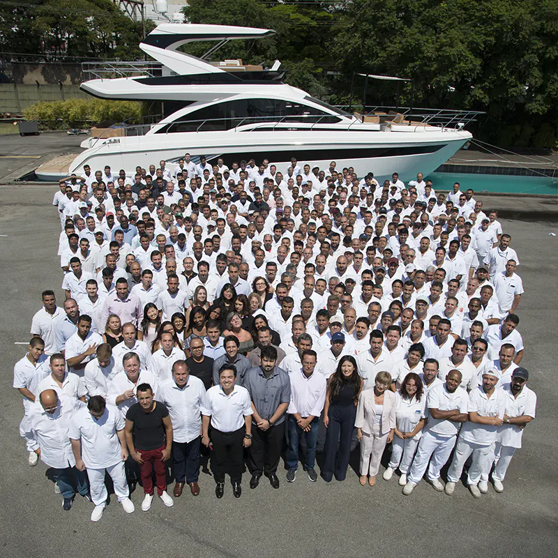 Hoje, somos mais de 400 colaboradores unidos na busca pela excelência e na realização dos sonhos de cada um dos nossos clientes — desenvolver barcos únicos.
